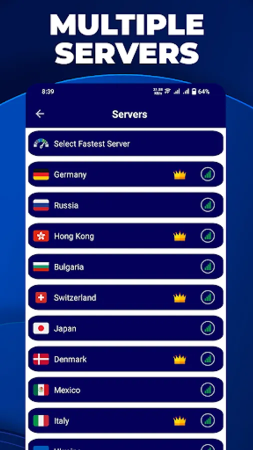 "VPN Pro" is designed to be secure and safe for online browsing. It does not require any additional permissions and has free servers to choose from. You can check the speed of your download, upload, and ping to ensure that you have a fast and reliable connection.