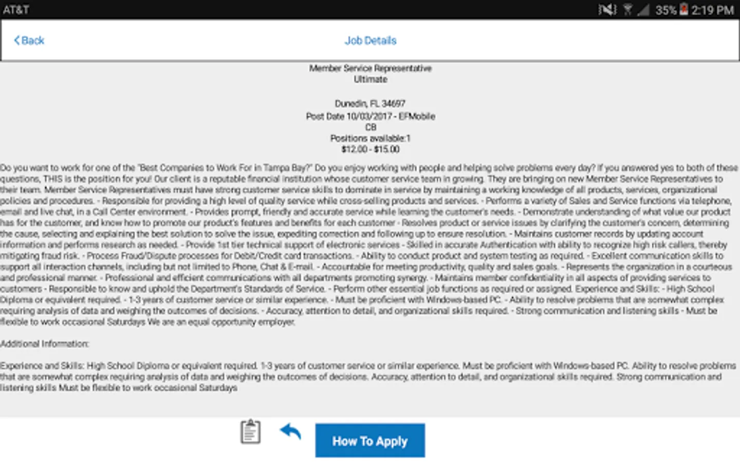 Find jobs which align with your skill sets or training using the Employ Florida Mobile app. Instantly view any job posted to the web directly on your Android device.