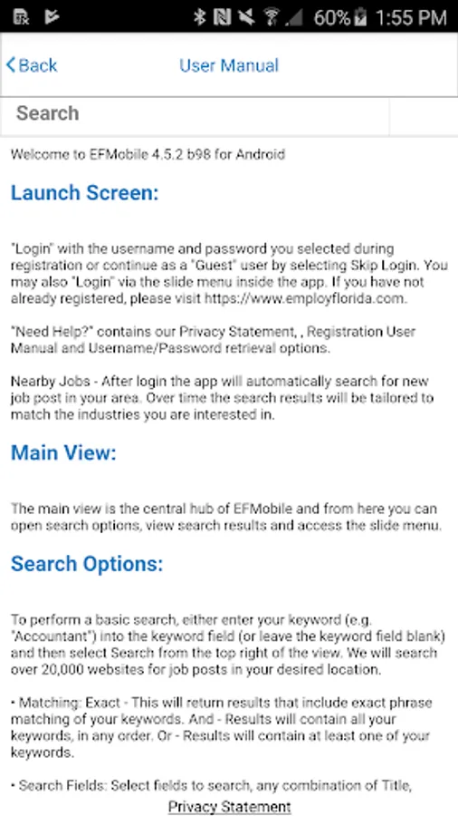 Employ Florida Mobile lets you instantly return to previous searches, recently viewed jobs and your favorite jobs.