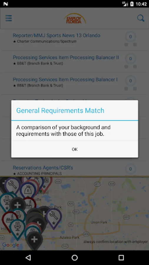 With Employ Florida Mobile unique “Jobs Nearby” function you can easily map all the latest jobs near your current location. Search for