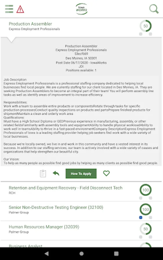 Find your dream job using the IowaWorks Mobile app. Instantly view any job posted to the web directly on your Android device.