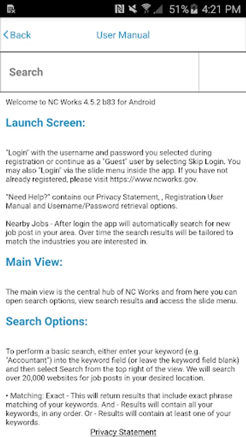 NCWorks Mobile lets you instantly return to previous searches, recently viewed jobs and your favorite jobs.