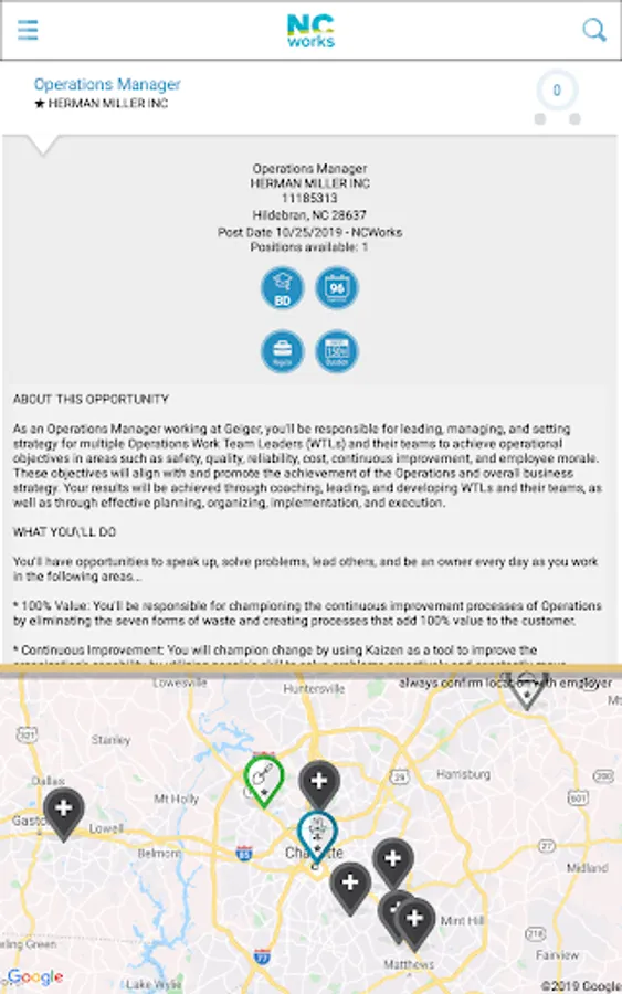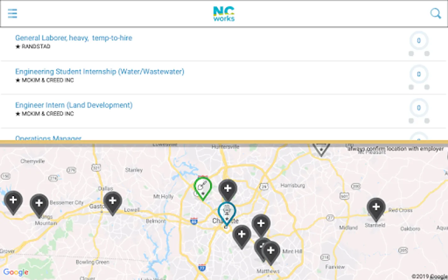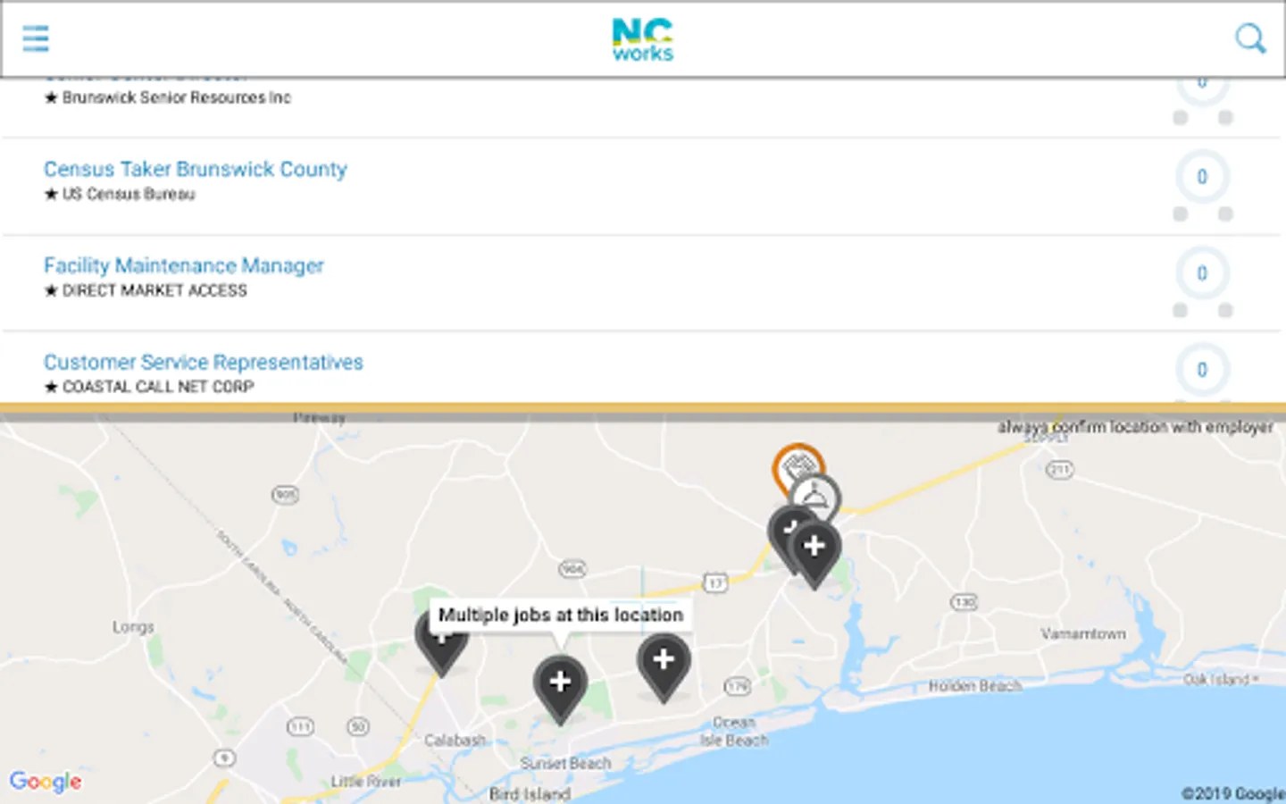 With NCWorks’s unique “Jobs Nearby” function you can easily map all the latest jobs near your current location. Search for jobs around your neighborhood or a different location. Simply tap color-coordinated pins to see more information or to apply for a job.