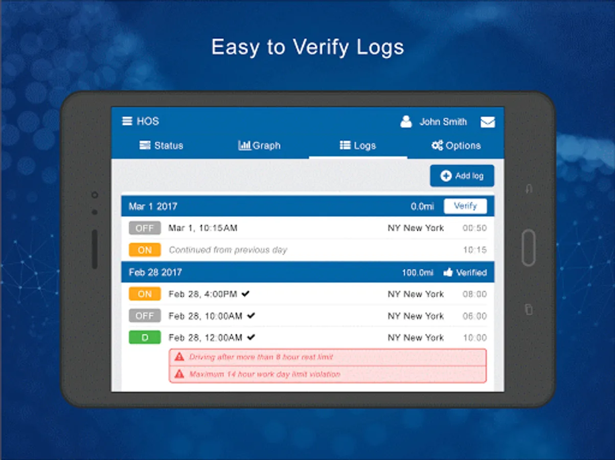 Easily record Hours of Service status and complete vehicle inspections from a tablet or smartphone.