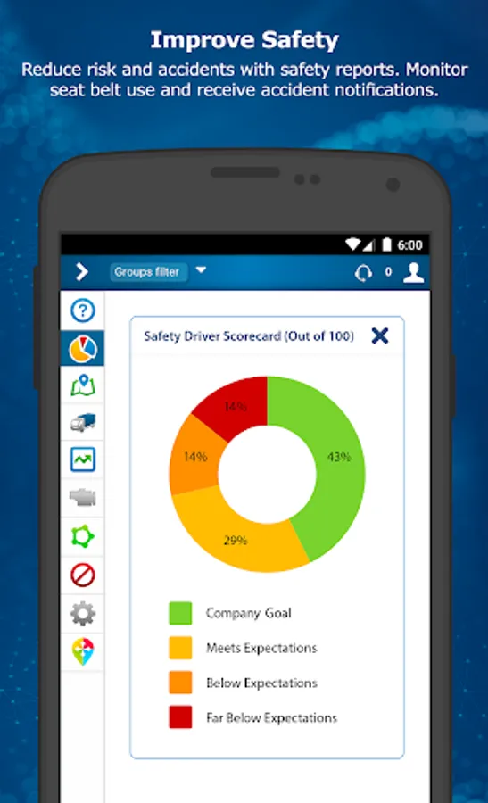 Track real-time GPS location on the live map and see a detailed Trips history for each vehicle. Set custom business rules and notifications for location, activity, speeding, hard braking, and seat belt use.