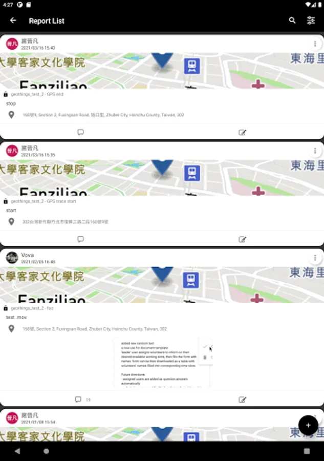 • Report Disaster: Volunteers and general people can record the latest disaster information, and send it to the local government or disaster relief organizations with the location through the internet or SMS.