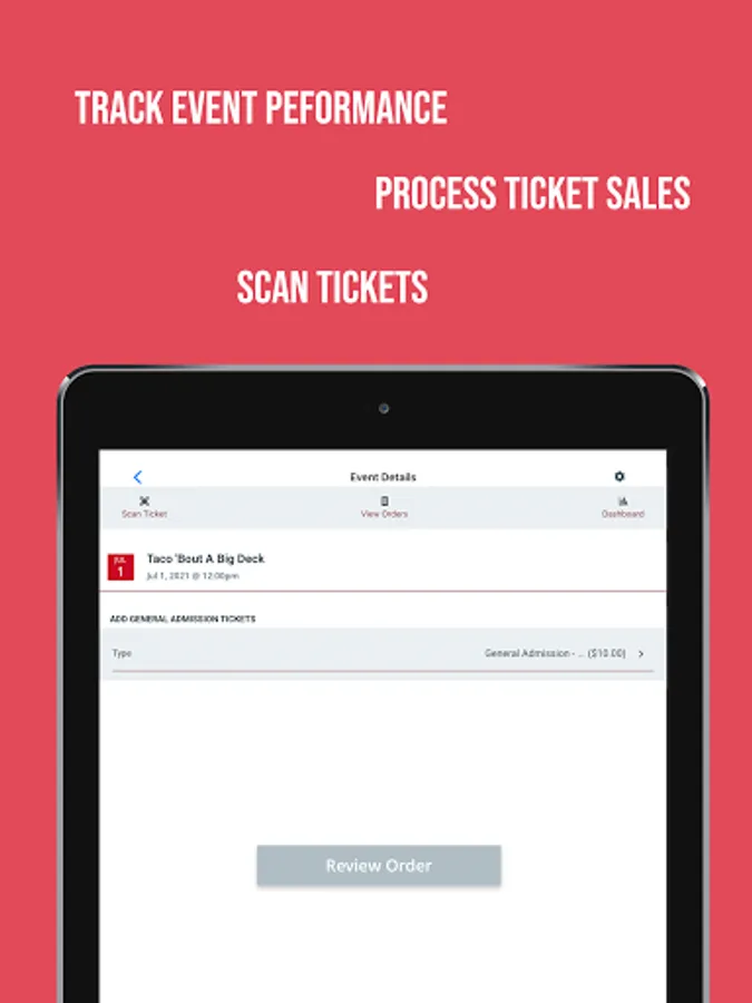 Sell your tickets on the spot and accept whatever payment method you'd like, then check them in with a click! Or if tickets were already purchased, simply scan or look up the ticket to complete check-ins in a matter of seconds. Evvnt Ticketing also gives you the tools to manage your events; view ticket sales and availability, control which ticket types are available for check-in, search ticket orders, and more!