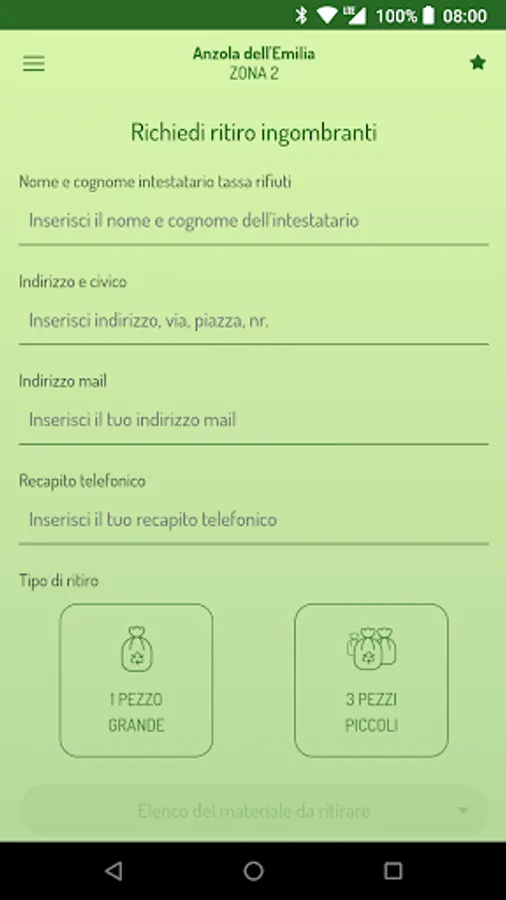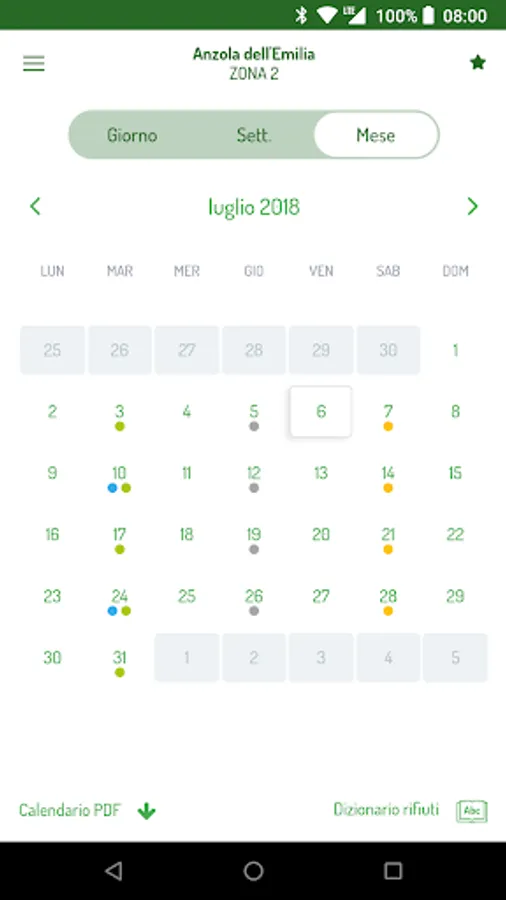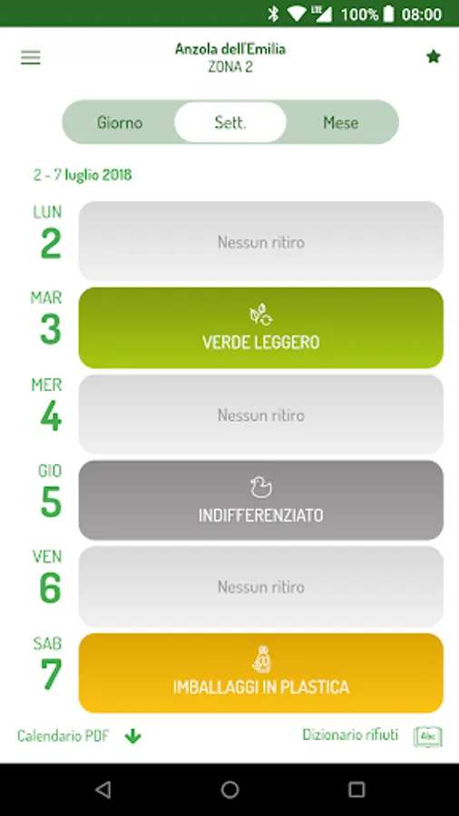 Calendar of waste collection door to door for municipalities of Anzola, Argelato, Calderara di Reno, Castel Maggiore, Crevalcore, Finale Emilia, Nonantola, Ravarino, Sala Bolognese, San Giovanni in Persiceto and Sant'Agata Bolognese.