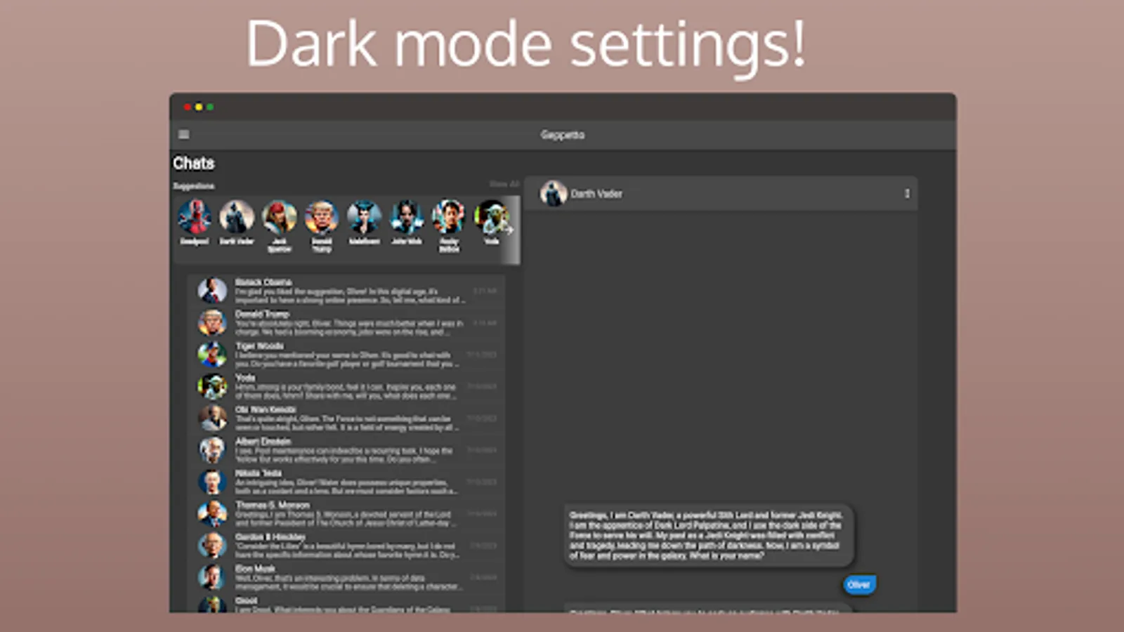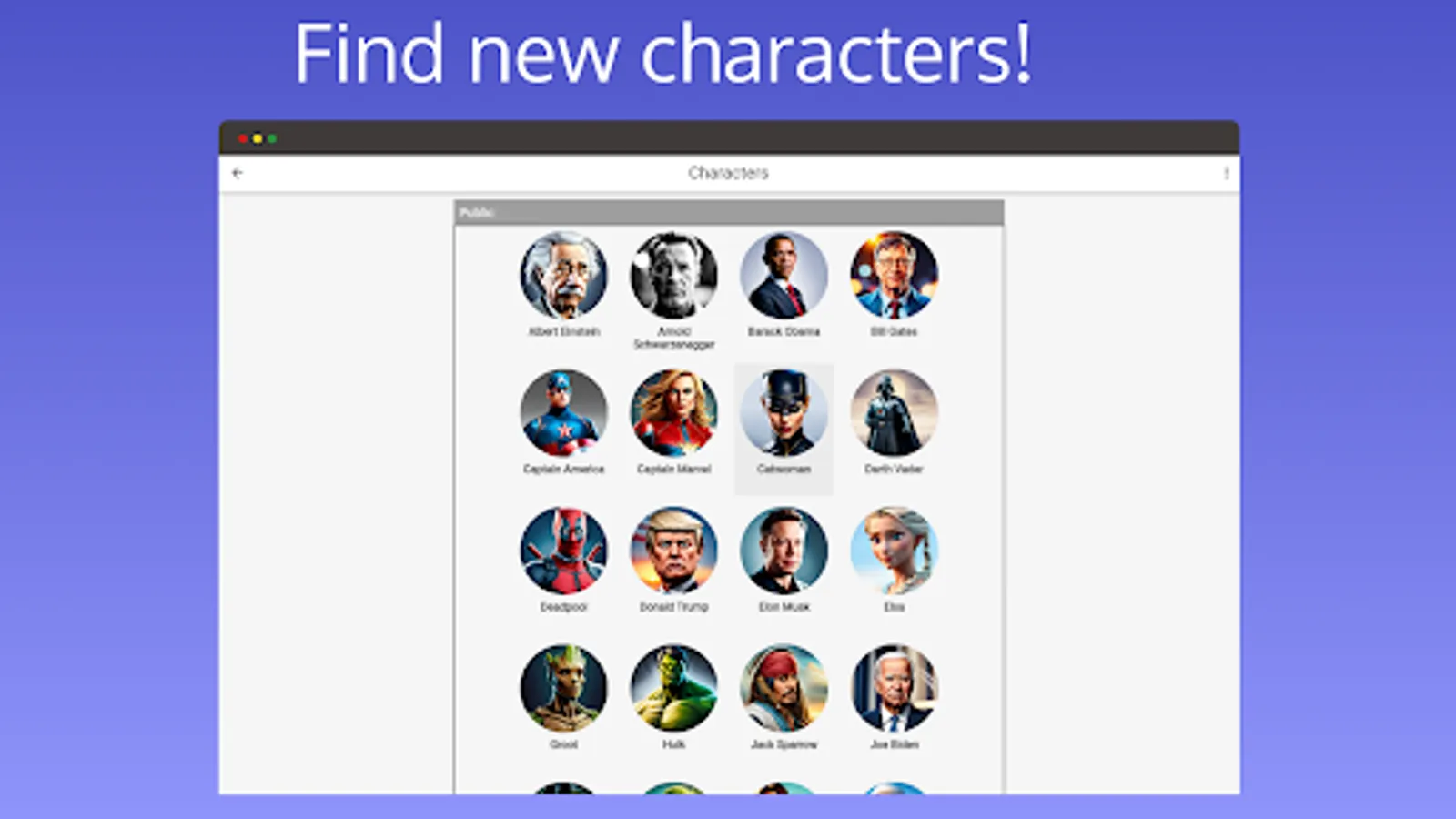 - Custom character creation: Unleash your creativity and create your own characters to chat with!