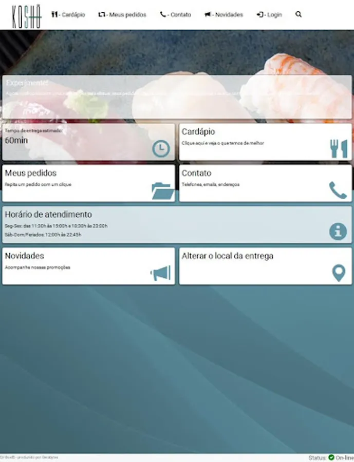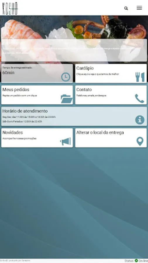 Introducing the official Koshô Delivery app! Our concern has always been in the care and quality food. The challenge of delivering the same quality that is found in Koshô has motivated us to create a 100% own logistics operation and a package designed to maintain the maximum freshness of food.