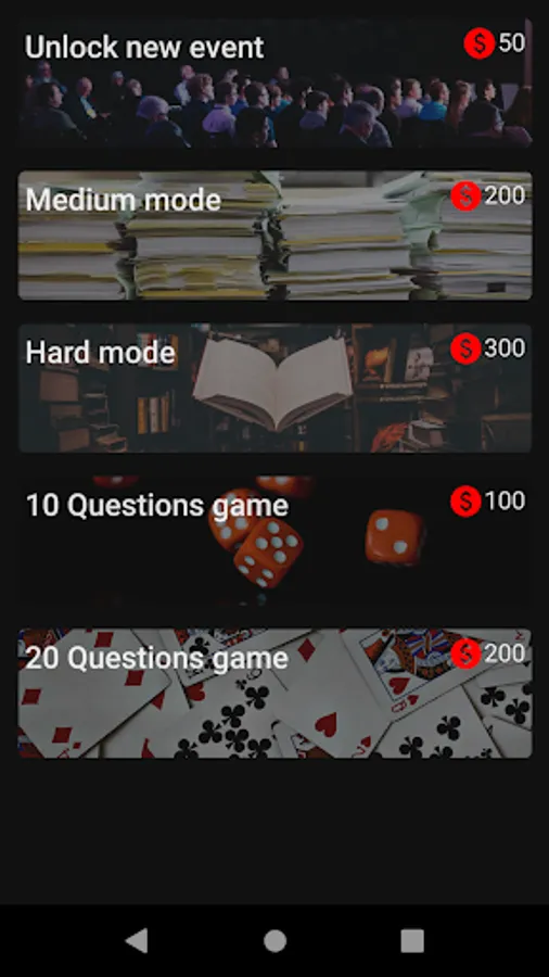Compete classic quiz game with 4 answers, True-False games or in Events witch are the most rewarding. You get coins and points after each game. Use coins to unlock new events and game modes, track your stats and more soon...