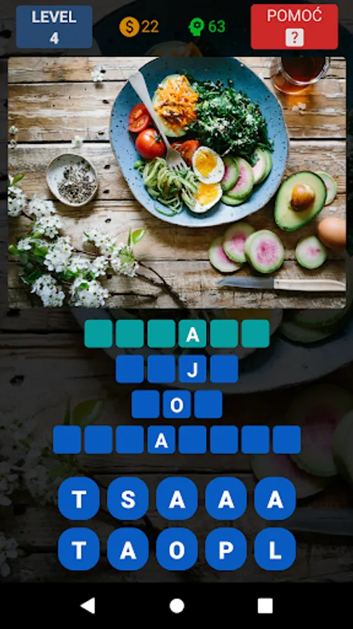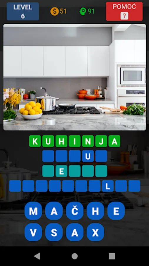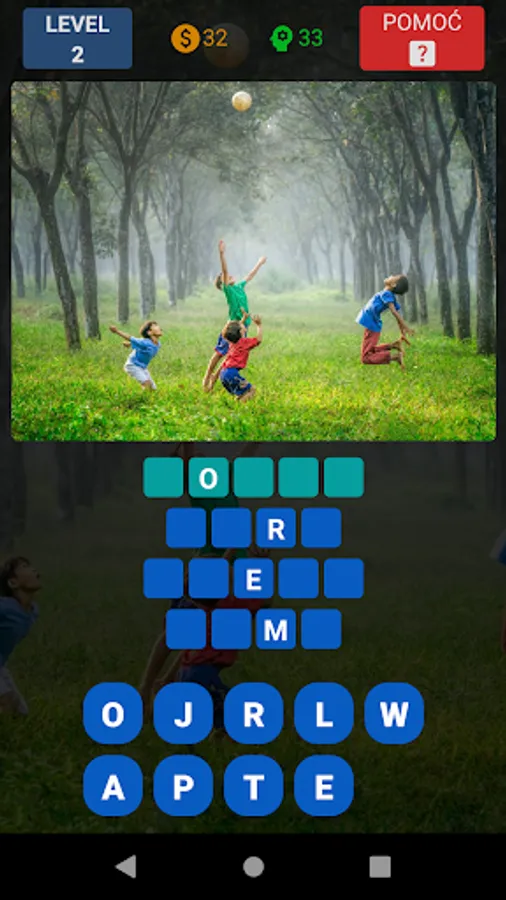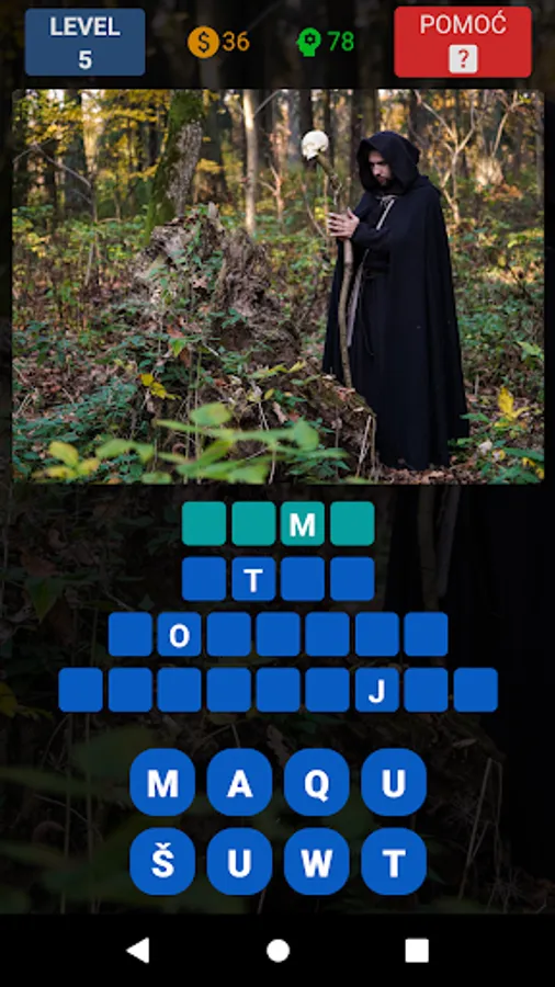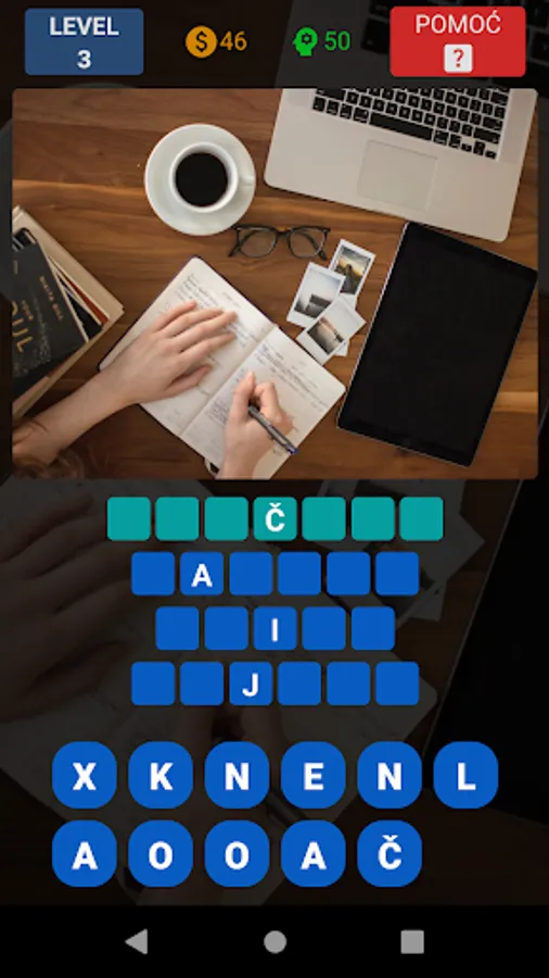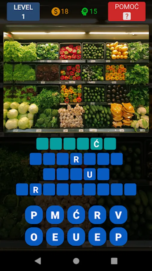 Words Game in the Balkan way. Guess 4 words per level based on one picture. Each word is separate and in each word one letter is revealed for the beginning. For each completed word and level, you get coins and points. You can use the coins to help in difficult levels, to discover one letter or remove one wrong letter. If you run out of coins, you can voluntarily watch an advertisement for a reward.