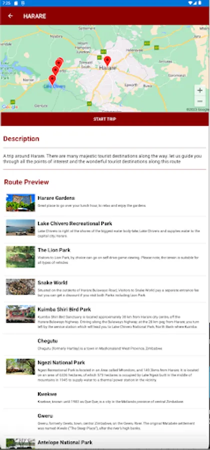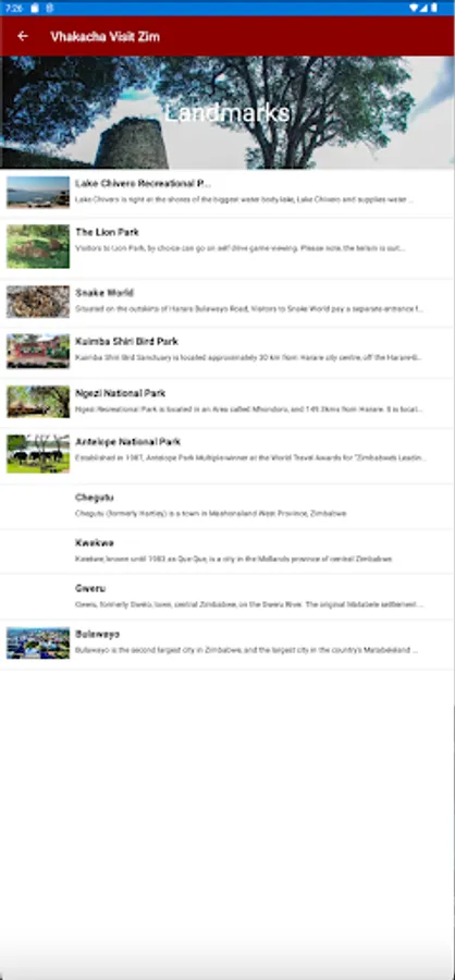 Come Explore Zimbabwe! Visit Zimbabwe - Bulawayo is a virtual tour guide app of the Zimbabwean city, Bulawayo’s most fascinating and exciting tourist points of interest. The app uses the GPS location on the tourist’s phone to guide them through a determined route to the point of interest. While they travel, tourists are educated and entertained as the app provides them with historical facts about Bulawayo, its wars, agriculture, people, music, etc. The Visit Zimbabwe - Bulawayo app allows tourists to plan their visit well in advance and gives them information on where they can find lodging, food, bathrooms, and other important travel provisions while they navigate through the beauty of Bulawayo.