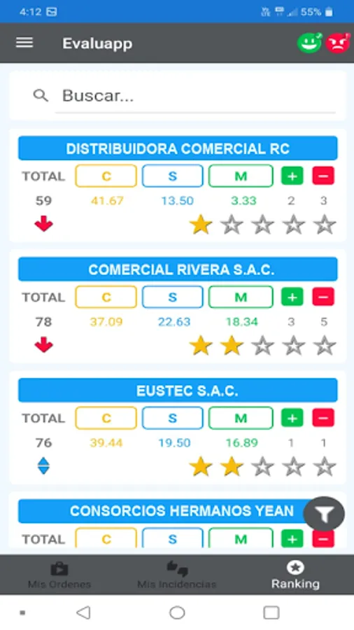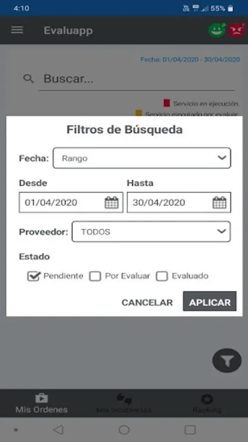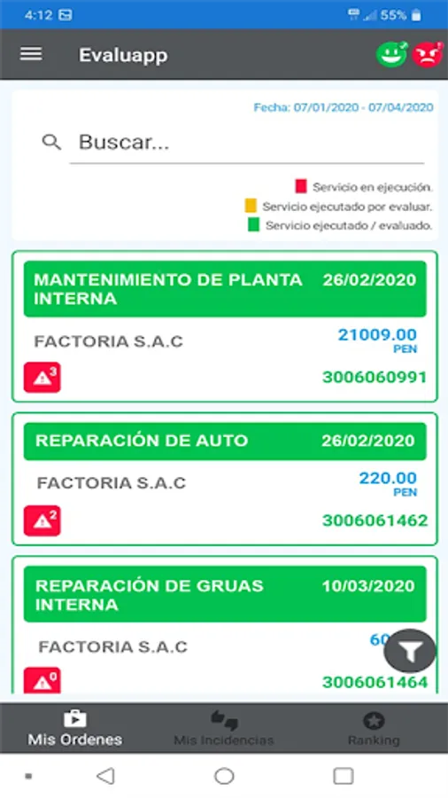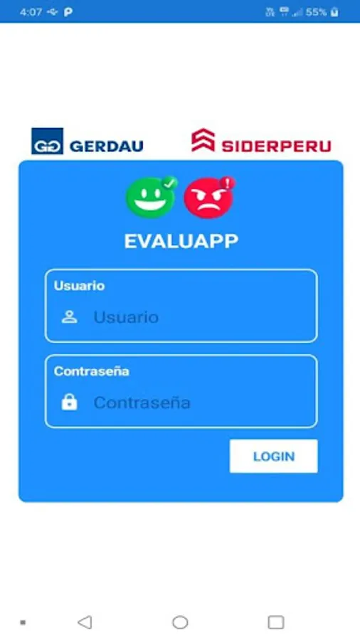 SIDERPERU mobile application to evaluate the requested service, as well as report incidents before, during and after execution.