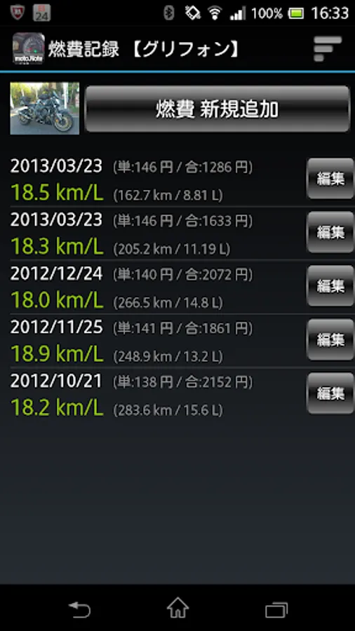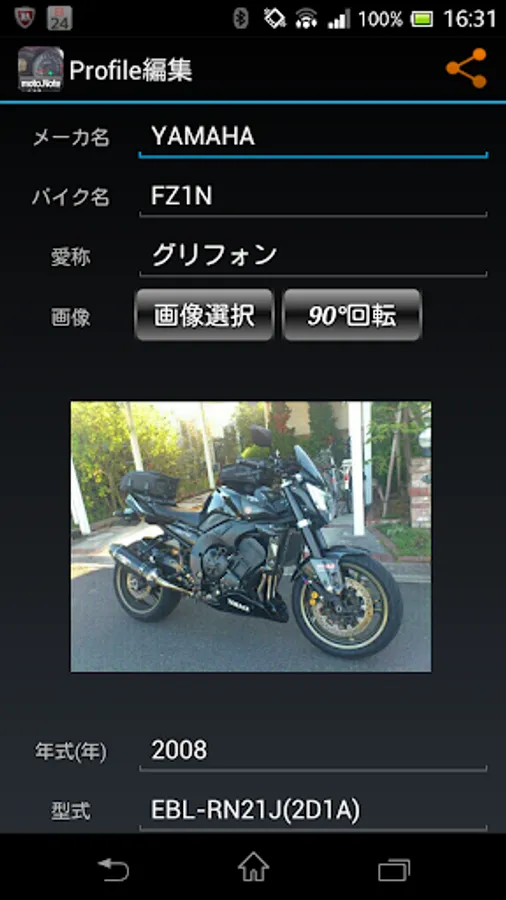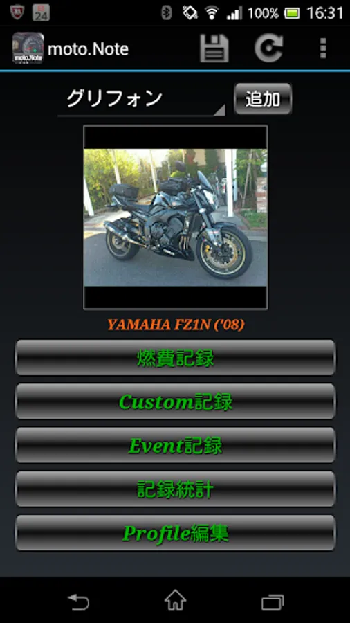 バイクの車両情報や燃費記録、カスタム情報を手軽に記録できるメモアプリです。