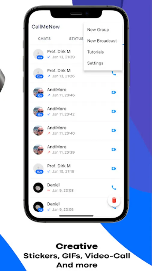 - Voice and Video call from CallMeNow to CallMeNow user for free