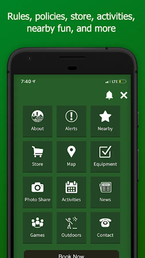 * Quickly access campground maps, hours and policies, campground news, flash sales and more.