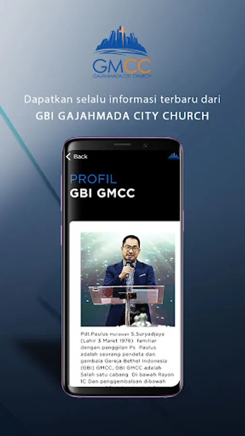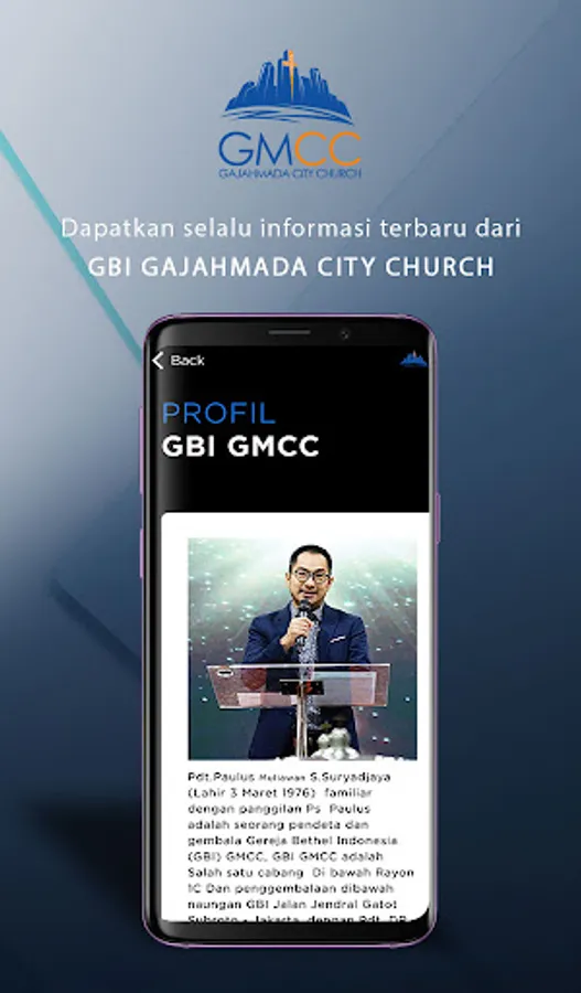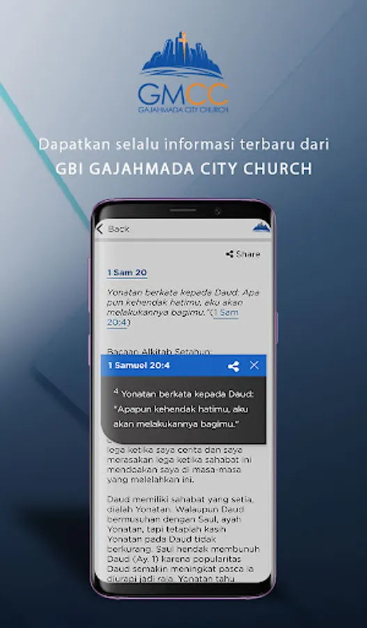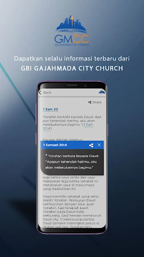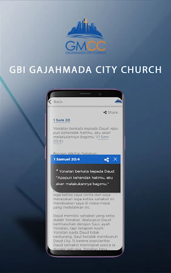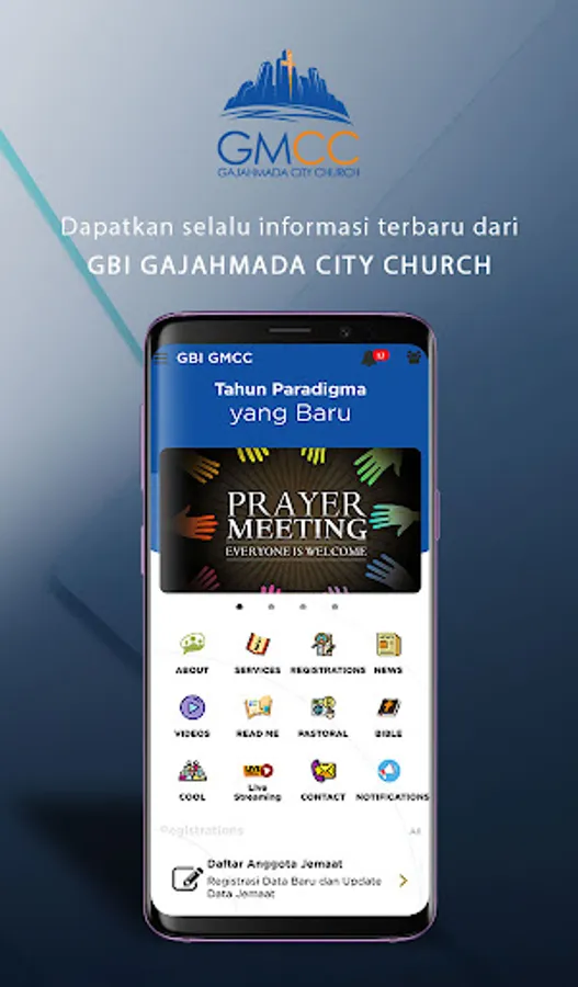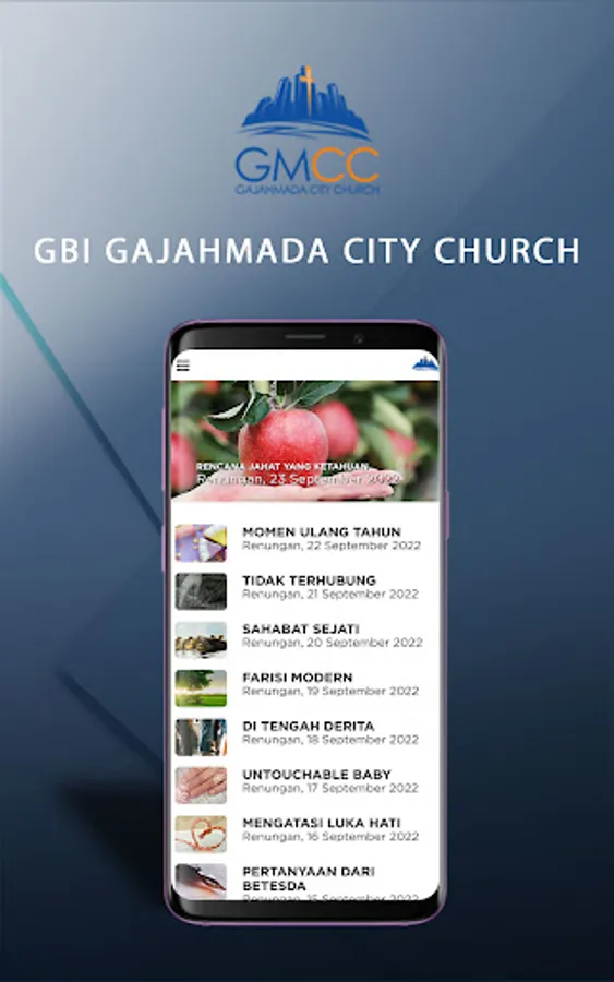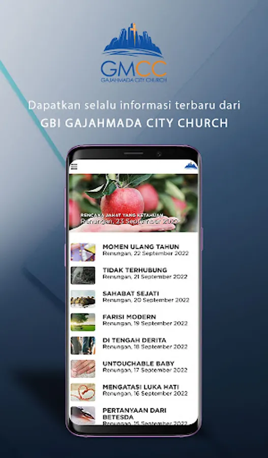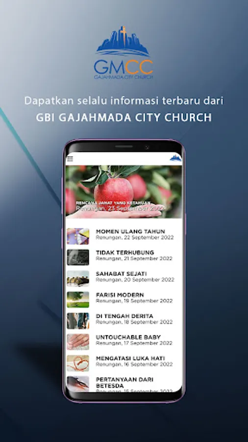 GBI GMCC (Gajah Mada City Church) Mobile App provides Bible, Articles, News, Videos: