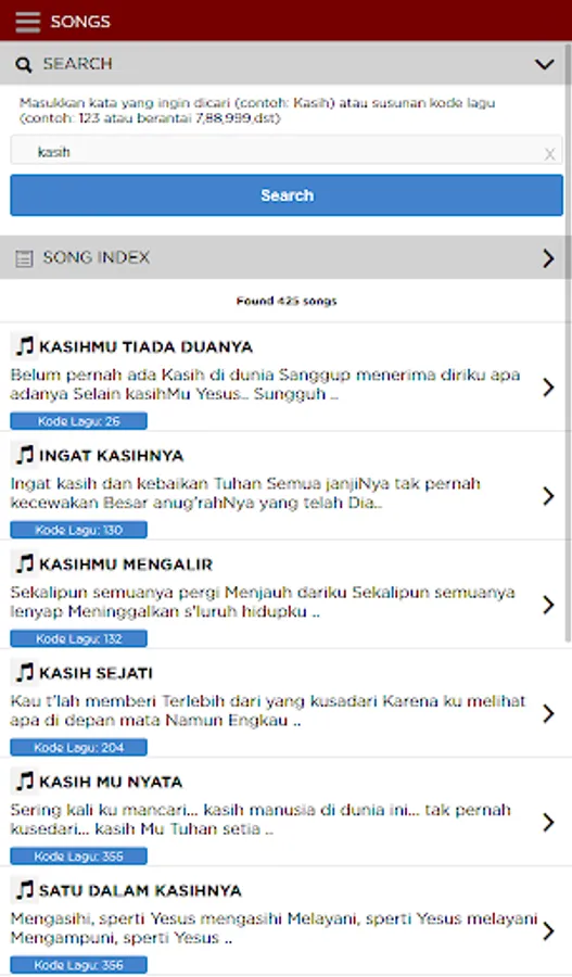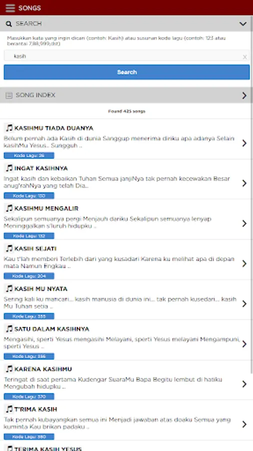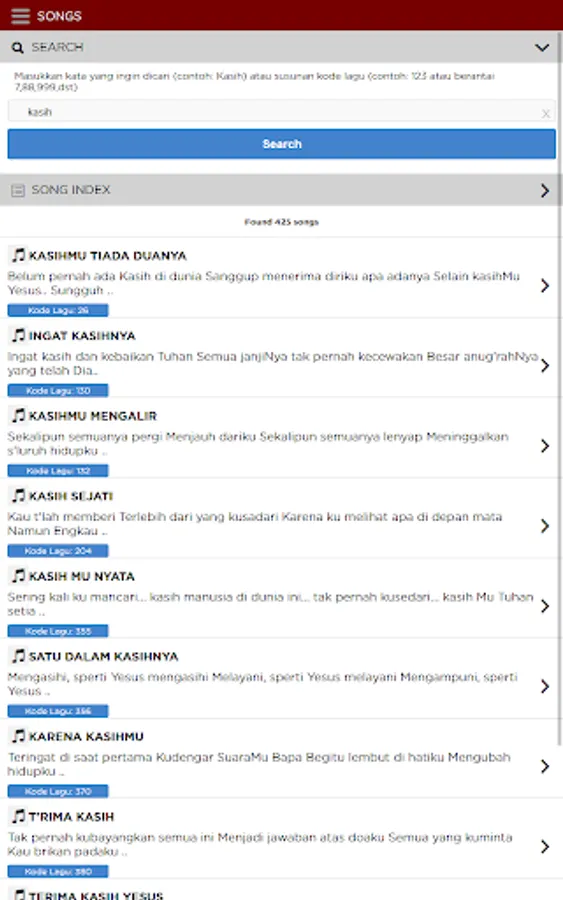 - Song lyric search to make user / church congregation easy to find worship song lyric quickly.