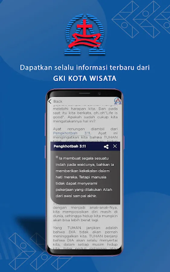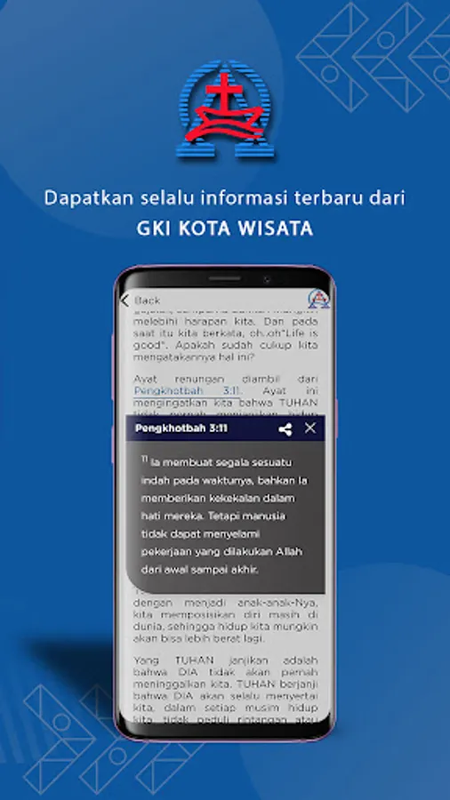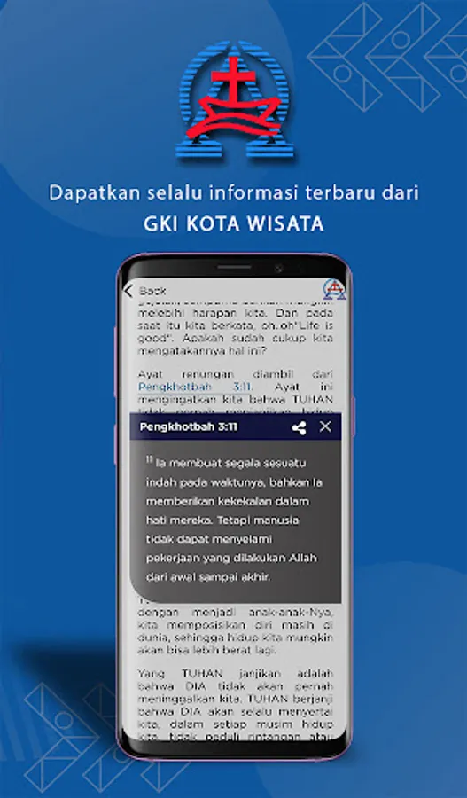 GKI Kota Wisata Mobile App provides Bible, Articles, News, Magazines, Videos:
