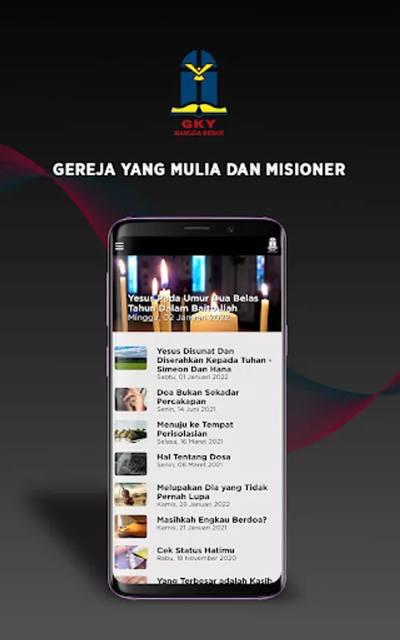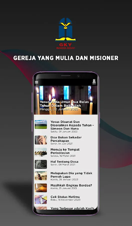 GKY Mangga Besar Mobile App provides Bible, Articles, News, Magazines, Videos: