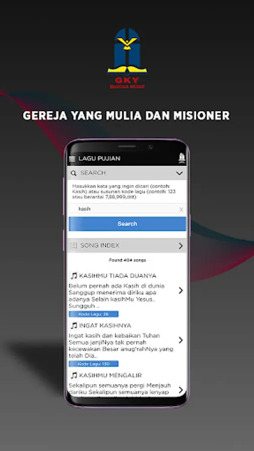 - Song lyric search to make user / church congregation easy to find worship song lyric quickly.