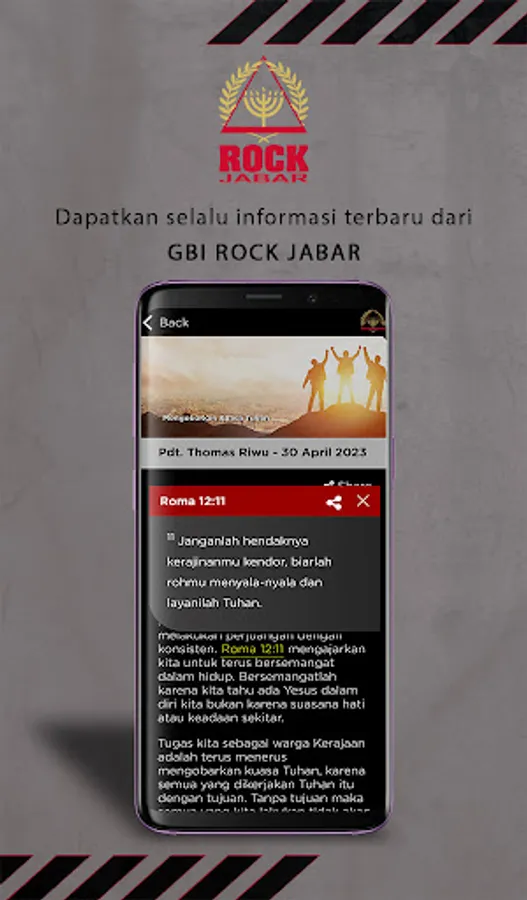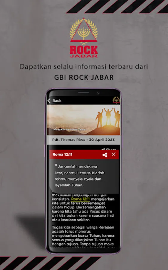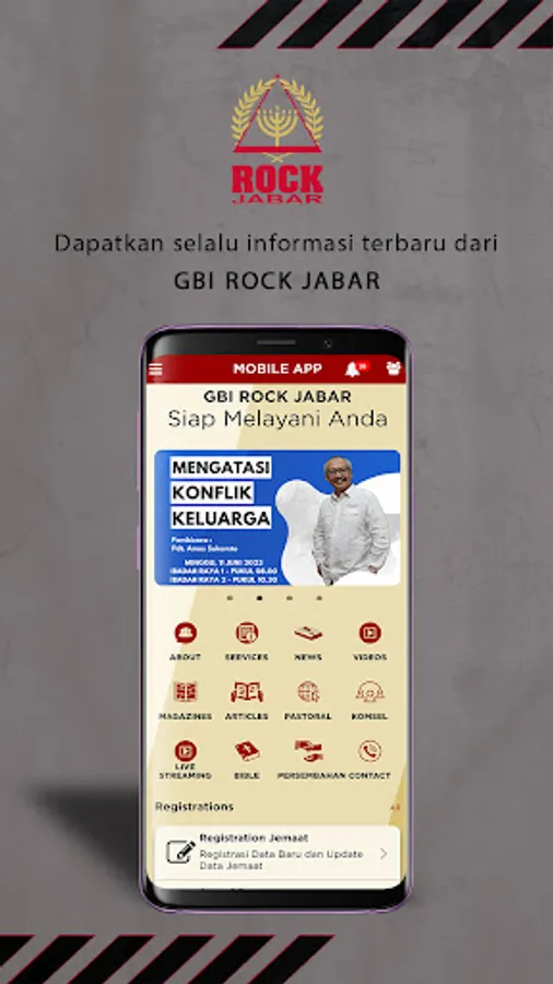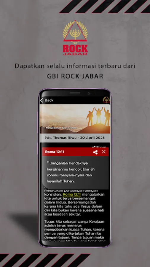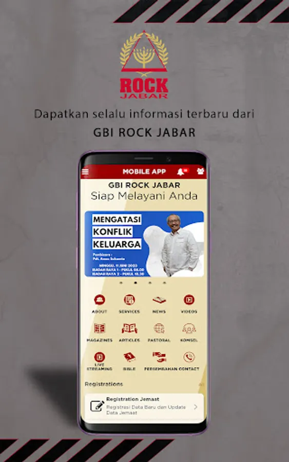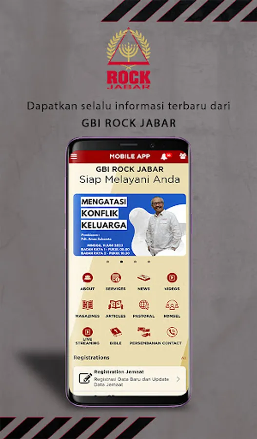 ROCK JABAR Mobile App provides Bible, News, Magazines, Videos: