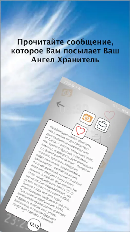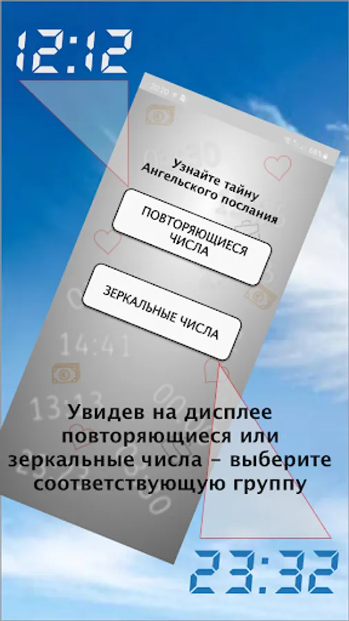 Do not dismiss the numbers on the clock, which can literally haunt you everywhere: on the phone while receiving a message from a friend, on the station board before your trip, on the alarm clock during an unexpected wake up in the middle of the night, and so on. Use this application, and you can find out in the blink of an eye what they want to warn you about or what your Guardian Angels advise you. And very soon you will learn to accurately predict your day, or even destiny.