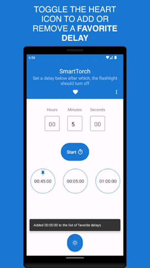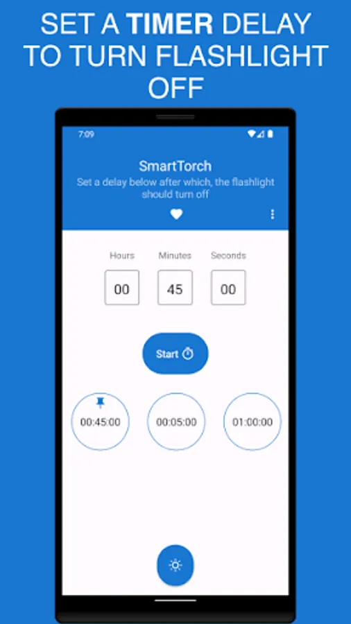 SmartTorch is a free, intuitive and easy to use flashlight app for android that lets you define when you want your device's flashlight to turn off. It does this by having you input the duration to which it needs to stay turned on before turning off.