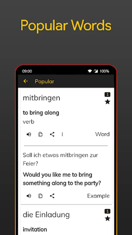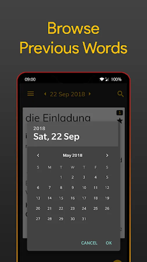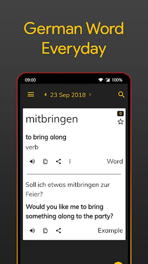 Learn a word a day from German! This app will allows you to set a notification time to get a reminder for today's word. we have you covered as we update a new word daily at 5:30 AM (GMT).