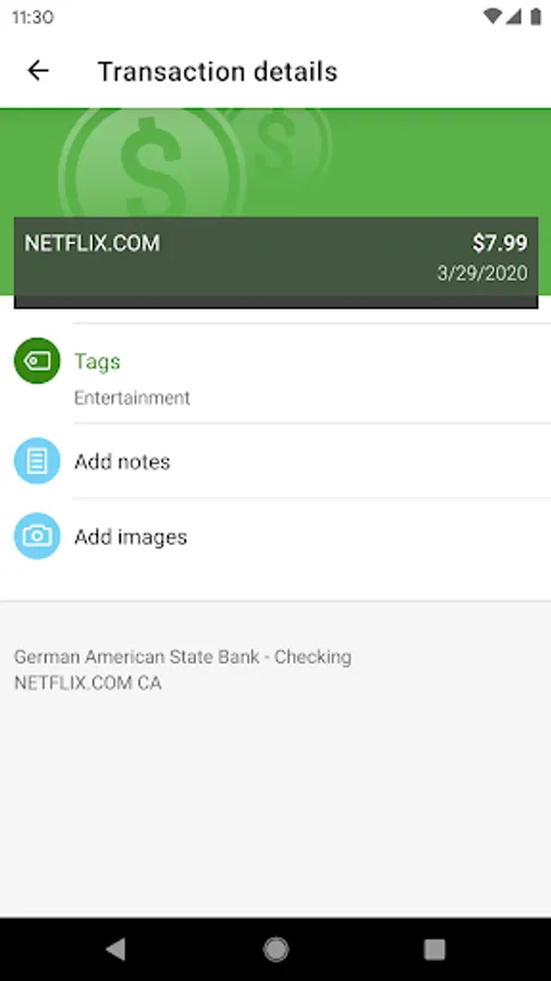 -Keep your transactions organized by allowing you to add tags, notes and photos of receipts and checks.