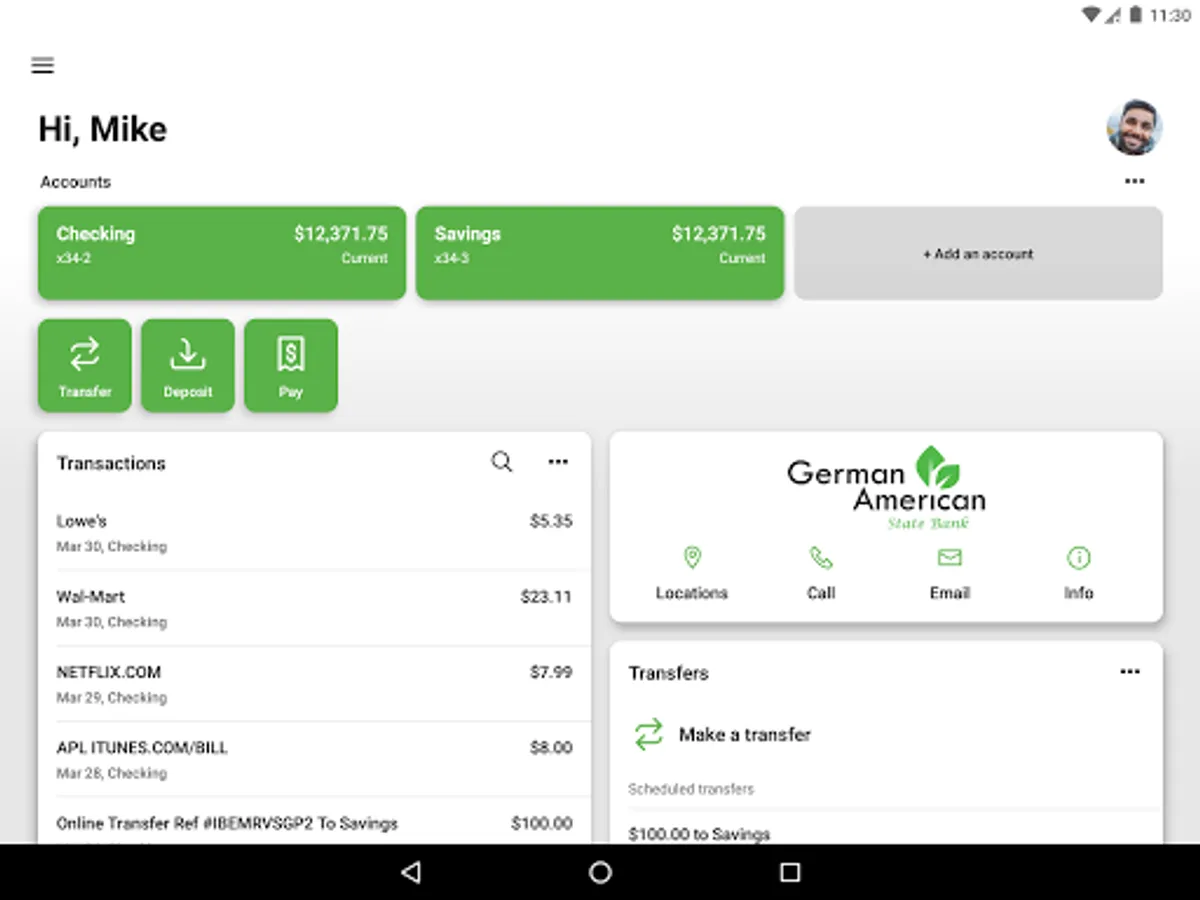 To use the German American State Bank app, you must be enrolled as a German American State Bank Internet Banking user. If you currently use our Internet Banking, simply download the app, launch it, and login with the same Internet Banking credentials.