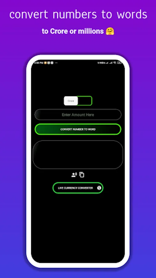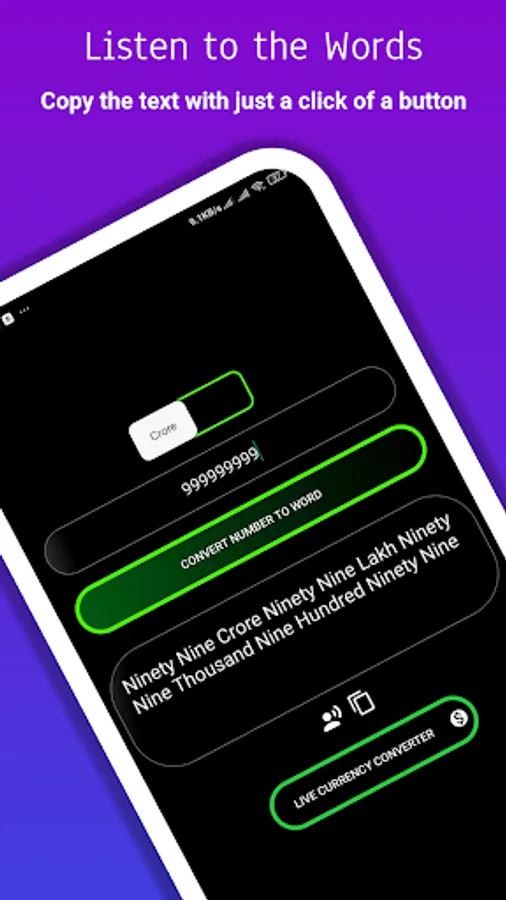 Number to Currency converter is an app that allows you to convert numbers to words most efficient way. It also allows users to Convert Currency at a Live exchange rate.