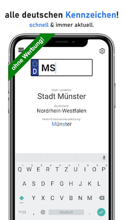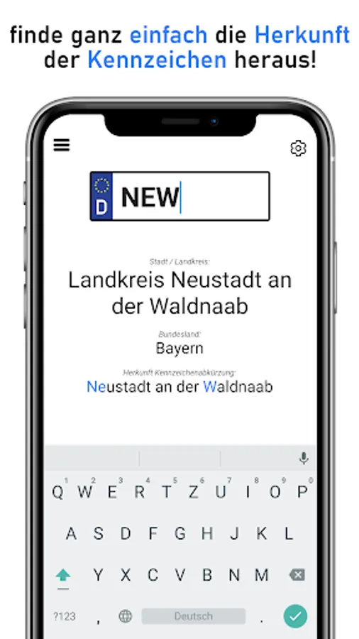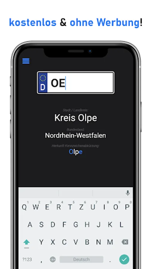 Find out which city the abbreviation on the license plate stands for. In this app you will find every license plate from Germany.