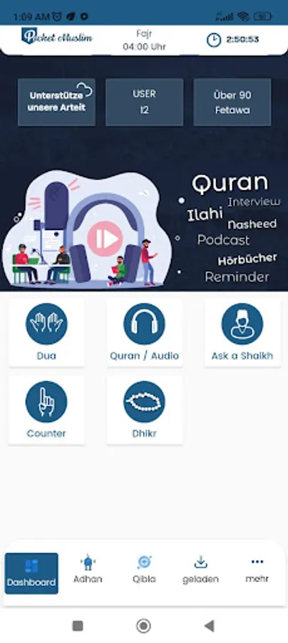 Die App verfügt auch über einen Counter, damit Benutzer ihre Dhikr nach dem Gebet zählen können, ohne sich zu verzählen. Es gibt auch eine Vielzahl von Hörbüchern auf Deutsch und in anderen Sprachen sowie eine Nasheed Rubrik, in der Benutzer islamische Lieder hören und genießen können.