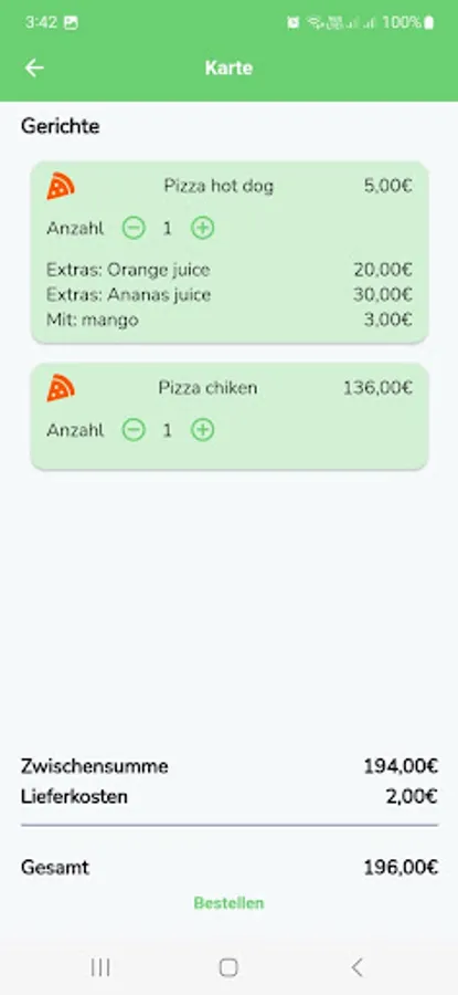 Eine Anwendung für Restaurants zum Verkauf von Fertiggerichten. In der Anwendung können Sie bei den Restaurants Essen zum Mitnehmen oder Liefern bestellen