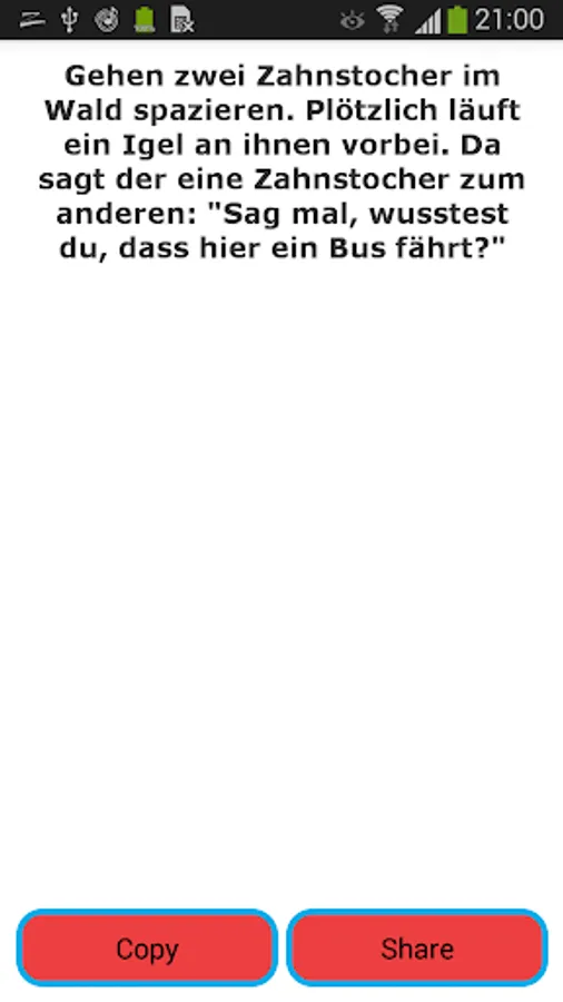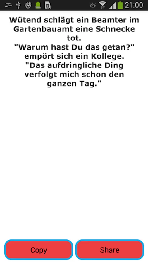 This app helps user to browse various german jokes messages like:Anti,Arzt,Auto,Bauernregeln,arzt,bauern,bier,blondinen,buro,computer,fussball,juristen,kinder,kirchen,musiker,politiker,schul,soldaten,sport,tier,urlaubs,,chuckNorris,ddr,sms Spruche,sonstige,versaute etc oøn your device.