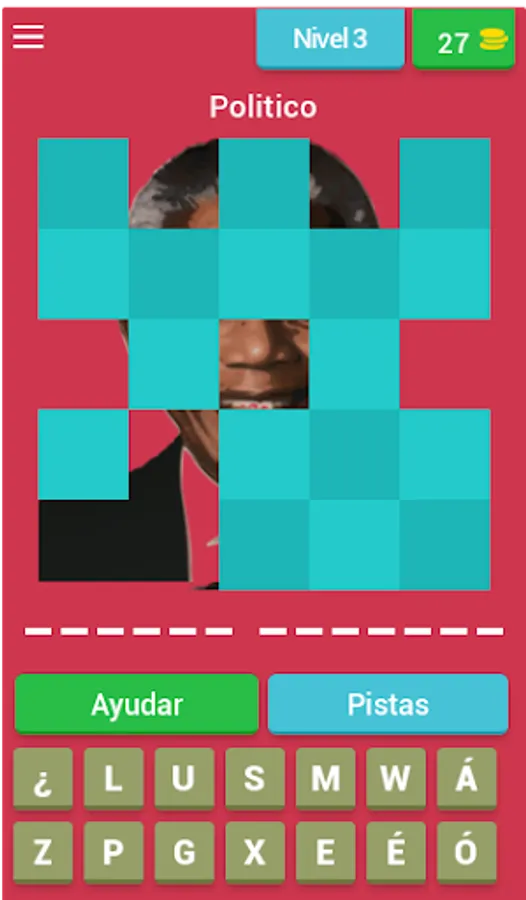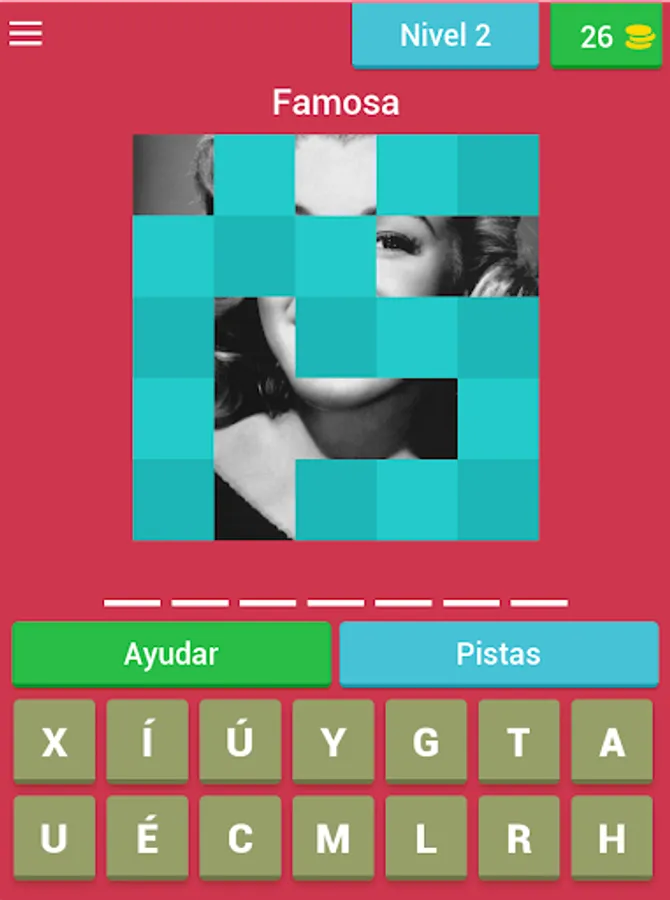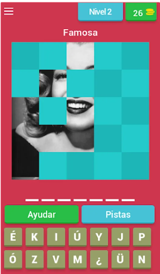 It is a game of questions and very good to spend entertaining moments with family games skills to guess the names of current celebrities and earlier each day will add new levels, each level a picture of famous shows responses, it must be recognized, and under each photo there are several letters which can be named after the famous, you can also ask for help from a friend or friends via WhatsApp, facebook and other social networking sites when he can not guess alone when the name is guessed is passed to the next level and receive rewards and extras. It is very entertaining and fun for everyone.