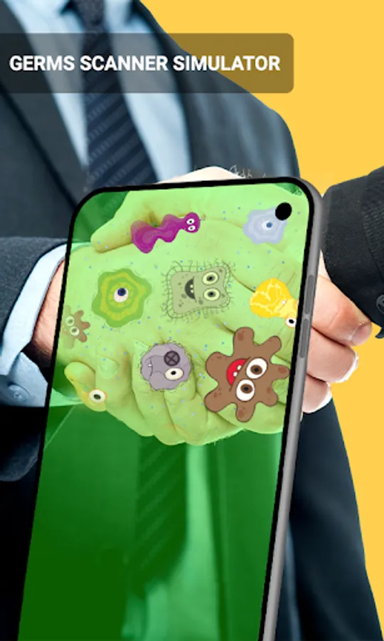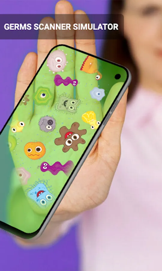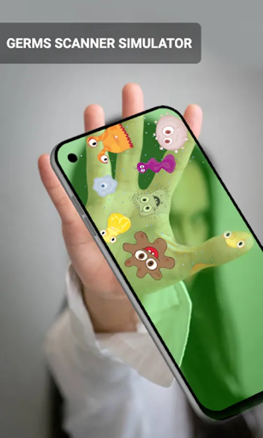 This germ scanner camera prank apps will scan your hand and change your hand to a germ hand with an AI camera the camera scan the hand then germs appear only on your hand body parts which look like real germs on hands now show fake germ hands to children who don't "protect health" and don't wash hands and bodies to protect the body from germs. This is a real hand scanner but the germs that appear on the hand are not real it’s a prank germ. Use the mobile camera for a hand scanner. The real hand will be changed with the help of a real camera to bacteria and virus hands, so you can scan hands and show the fake germs hands to children for good health habits.