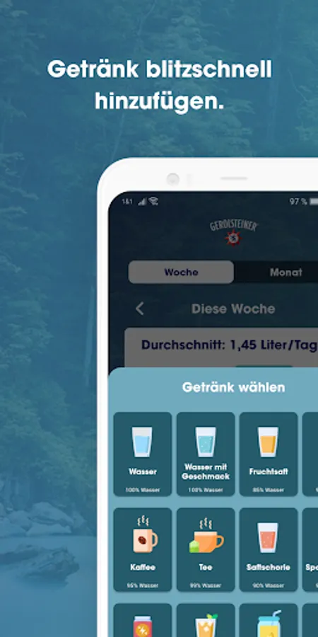 The Gerolsteiner DrinkCheck App – your personal drinking assistant! With the free drinking app from Gerolsteiner, you can easily determine your drinking needs, drink water, receive regular drinking reminders - and benefit from exclusive competitions!