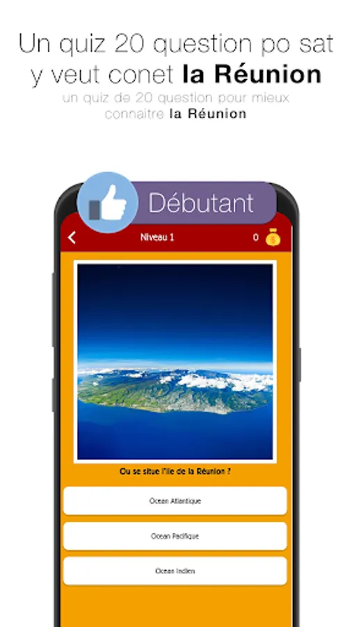 The beginner level is a quiz for those who do not yet know the island of Reunion, thanks to general questions on the island.