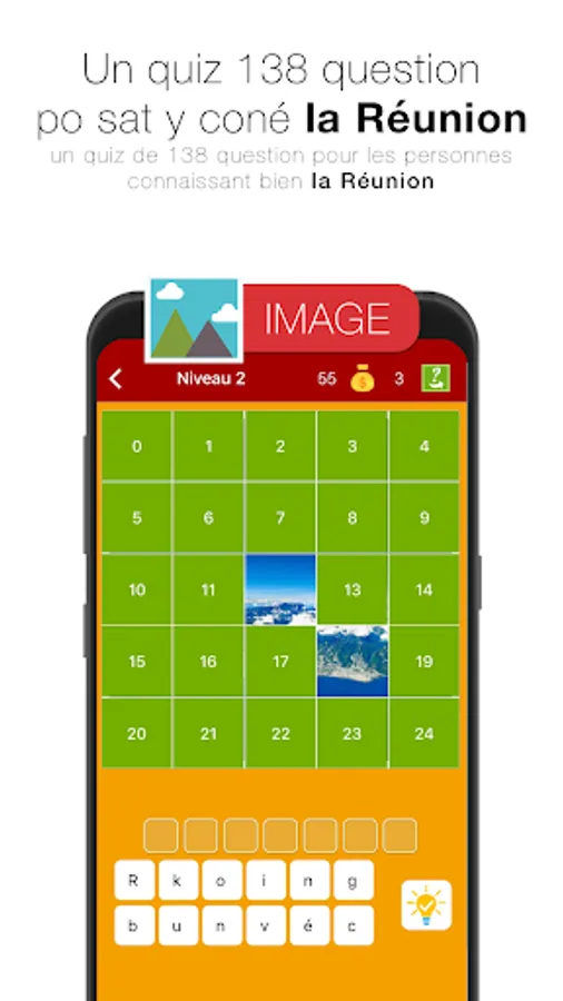 The quiz image and quiz image v2, is rather intended for those who already know the island, with more than 200 diverse and varied images of Reunion to discover.