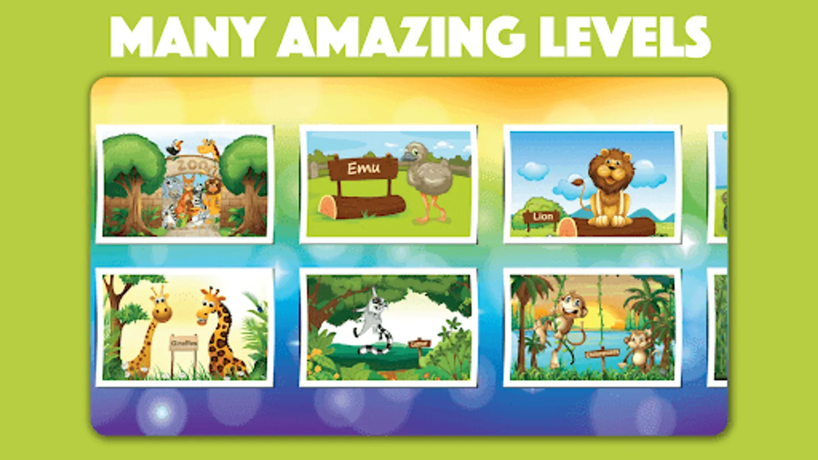 Animal reveal and discover for kids is a great game for toddlers. It contains fun, colorful illustrations of animals, such as lions, zebras, rhinos, monkeys, tigers, birds and much more.