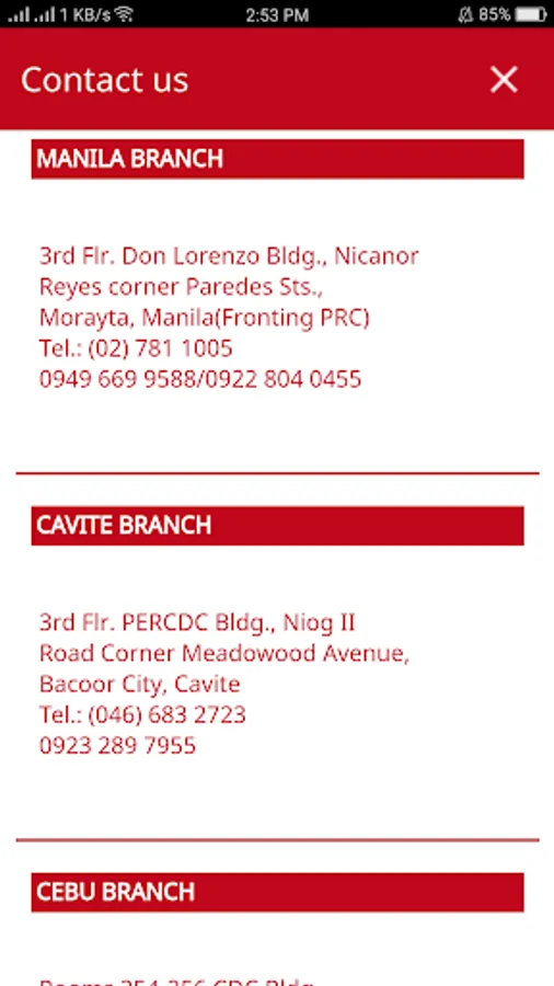 - Branch ( Manila, Cavite, Cebu, Davao)