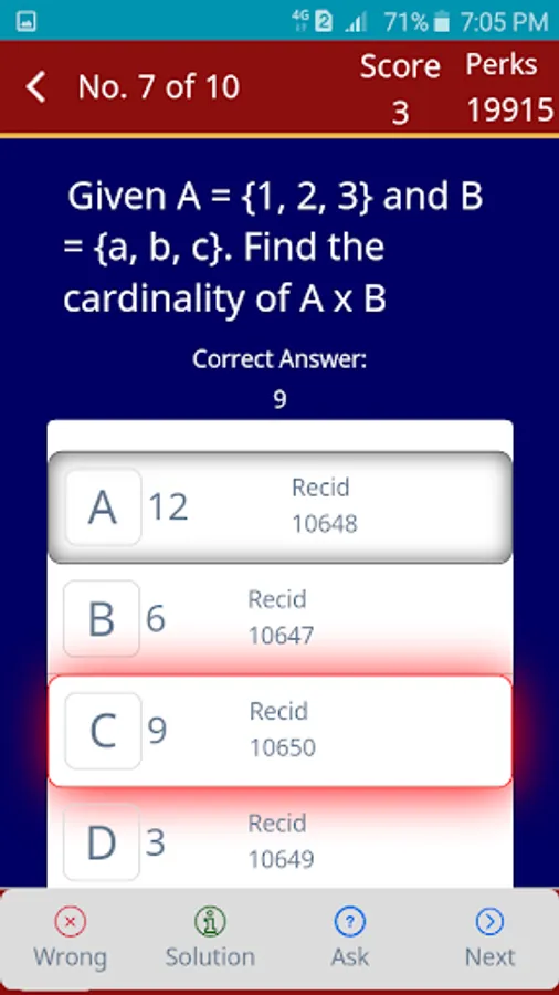 This App uses Perks as currency in order to take exams. Each exam costs 100 Perks.