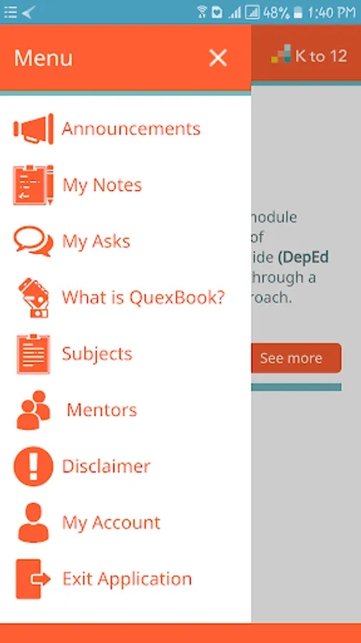 QuexBook is a mobile learning module patterned on the Department of Education’s K12 Curriculum Guide (DepEd K to 12 CG) designed to enhance and strengthened knowledge about various subjects in Junior High and Senior High Subjects.