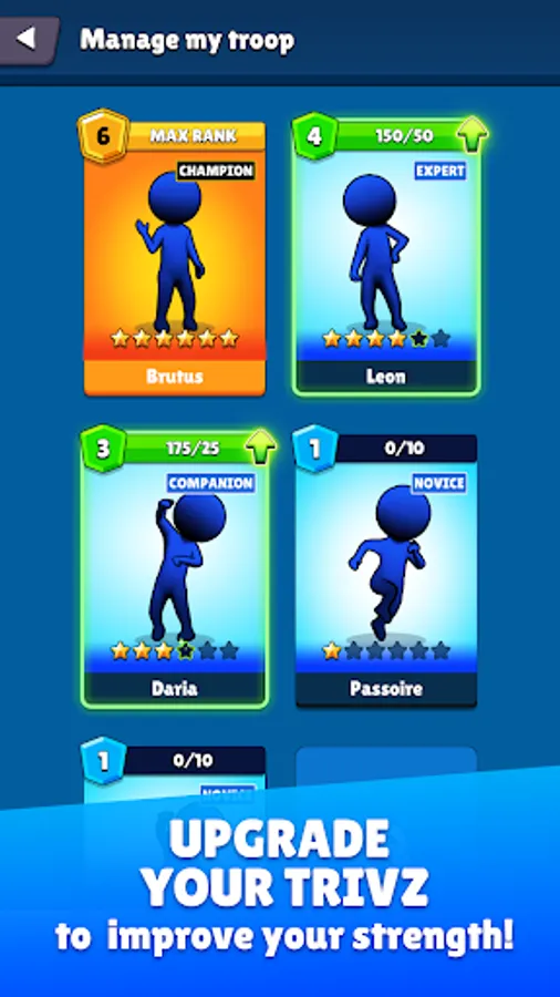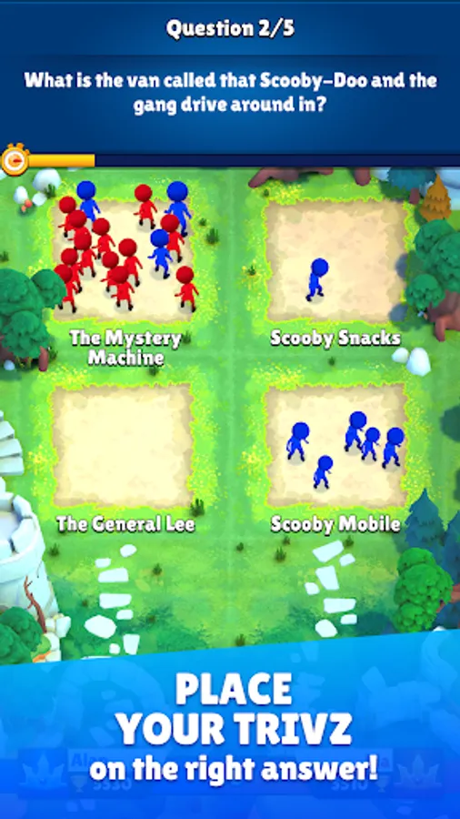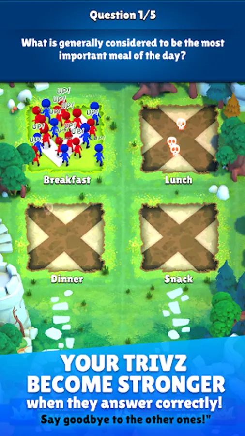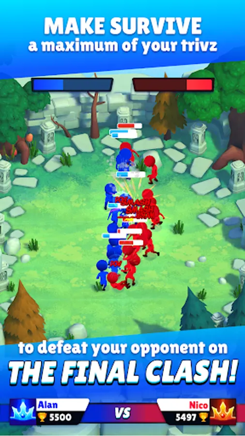 You are in charge of several characters (the “Trivz”): your aim is to answer questions correctly to keep as many of them as possible, and win the final clash against your Opponent!