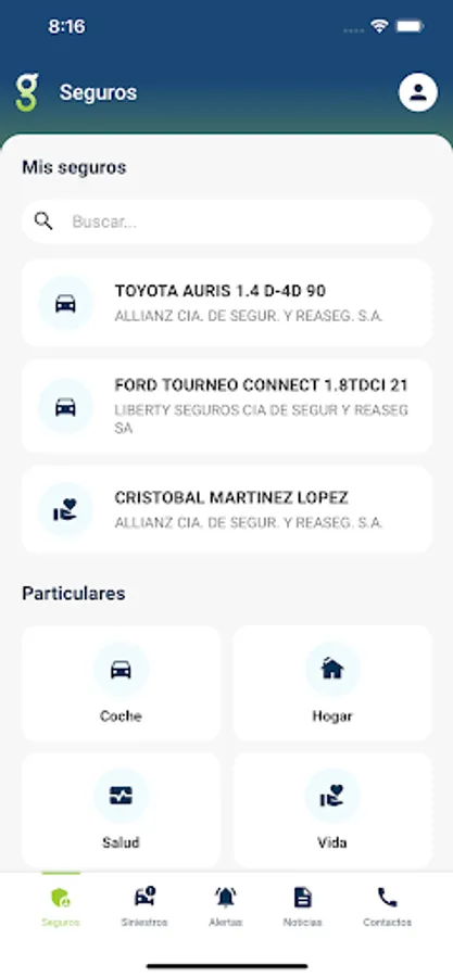 With the app you can see the news, insurance data, claims, notifications, contacts and access to assistance numbers