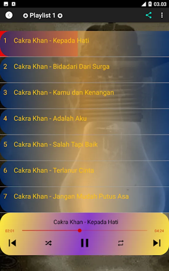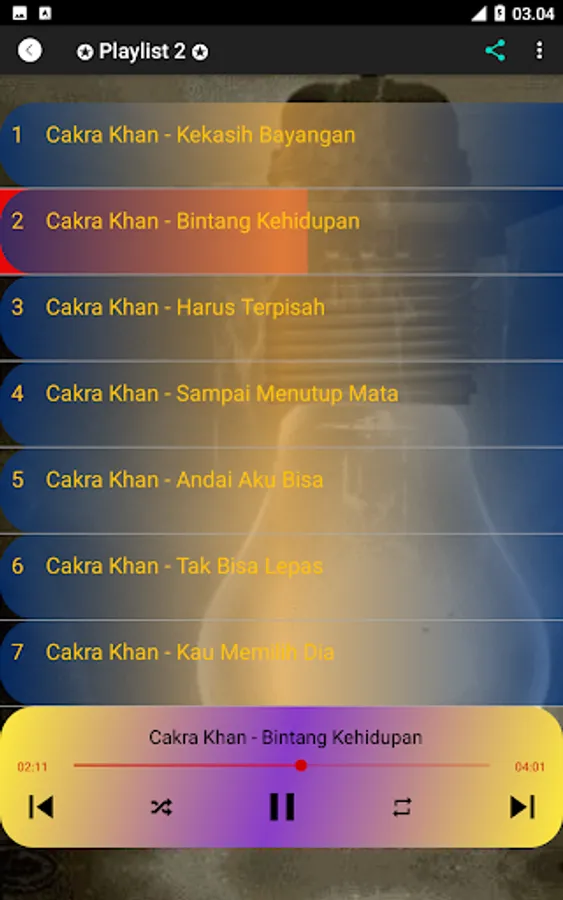 Here's a list of 28 songs from Cakra Khan's Lover of Shadows Offline: