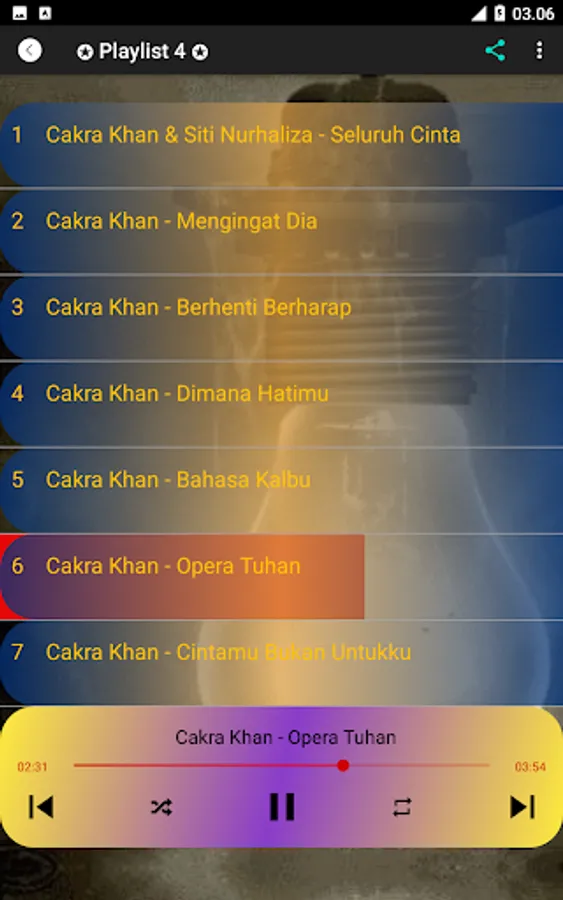 Thank you for downloading the Cakra Khan & Siti Nurhaliza song application - All Love, this offline full album, I hope you are always given health and abundant sustenance.
